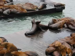 A touristy, colorful area of wharfs and piers where you can watch sea lions up close sunning themselves on the docks.