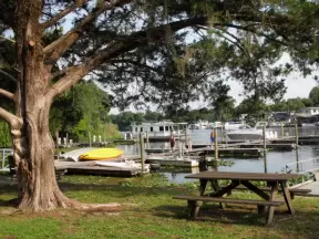 Paradise! A casual cafe on the water with adirondack chairs, picnic tables, and a great breeze!