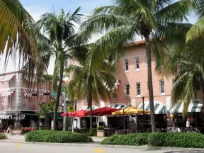 Main strip of Coral Gables, a planned community from the 1920s with a strong Latin influence.