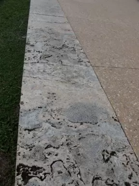 Across the street from the lighthouse, a paved nature walk with animal prints in the concrete and lovely lookout area at the end.