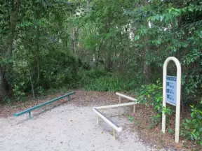 Enjoy a walk through tropical gardens next to a bubbling brook, and then a rest in a shady picnic area with a playground.