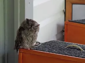Owls, eagles, pelicans, turtles, giant tortoises, an alligator, in cages on a pretty piece of land with a pond and beautiful trees.