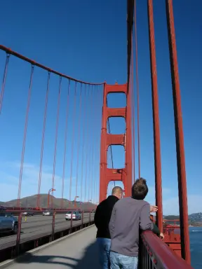 Picnic tables, amphitheater, gift/coffee shop, and wharf, under the Golden Gate Bridge!