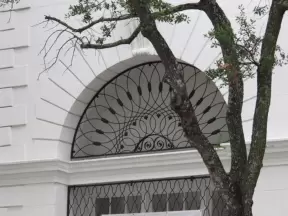 A tropical wonderland of palms, ferns, bromeliads, fountains, sculptures, rocks, ironwork gates, and pergolas, with the delightful scent of flowers filling the air.