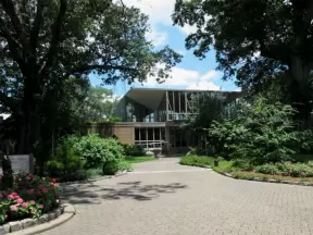 Private university with raised views over a lake, and Frank Lloyd Wright architecture.