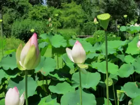 A park of exquisite beauty, with flowering trees and a picnic lawn fronting a pond full of turtles and koi.
