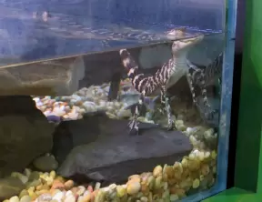 An aquarium with nice exhibits including a manatee that kisses you through the glass!
