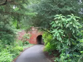 2.4 mile paved, intermittently shady greenway with varied sights!