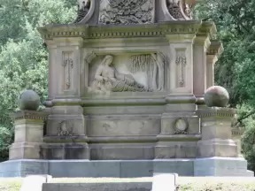 Impressive, stately building atop a hill, with lovely gardens and statues, and a fountain in the middle if the street.