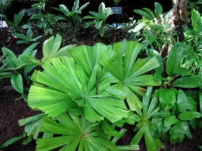 A tropical wonderland of palms, ferns, bromeliads, fountains, sculptures, rocks, ironwork gates, and pergolas, with the delightful scent of flowers filling the air.