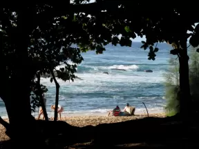 Honoli'i (Honolii) Beach Park has a beautiful headland, tropical vegetation, and a popular surfbreak.