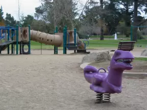 Best playground you'll ever visit! Huge slides, hillside slides, steep grass slope for cardboard sledding, cable zipline, and pretty trees to picnic under.
