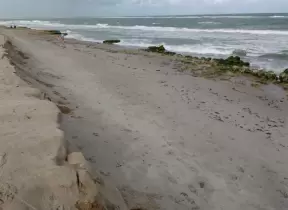Nice place to park and watch the water rushing in, or stand on the cement jetty and look back at the beach.