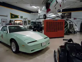 Military museum with jet fighters, World War I and II exhibits, historic and racing cars in Woodland Auto Display, bombs and missiles, communications equipment, and jeeps.
