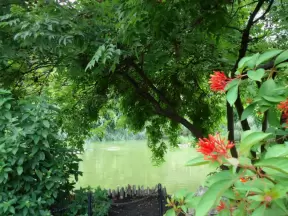 A wonderful running/walking path leads through jungly vegetation around three lakes.