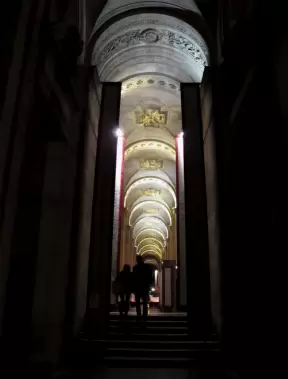A glass and metal pyramid in the entry courtyard of the Louvre Museum, truly glorious at night!