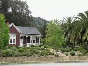 Lovely neighborhood walk past sweet houses and gardens, near fragrant hills with eucalyptus and wildflowers, plus a playground and lawn.