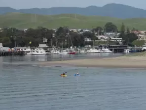 A tiny stretch of boardwalk in a beautiful setting on the estuary, with a coffee shop with a sunny patio facing the water, and cute cafes where you can relax.