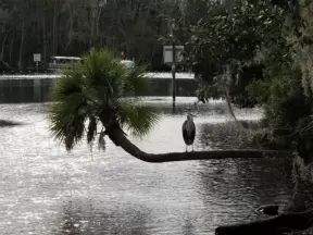 Tropical paradise with amazing trees, soft green grass, and woven huts shading picnic tables with BBQs that line the river, plus bike and kayak rentals. Beware alligators.
