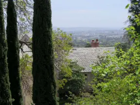 Picture-perfect rose gardens, below a grassy green hill across the street from where the Santa Barbara Mission stands.