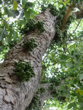 Lovely stroll past many different types of trees blossoming with seeds and flowers.