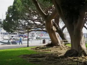A beautiful pine-filled park with two playgrounds and a skate park.