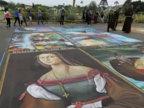 Special area of Balboa Park with adobe buildings, mesquite trees, and brightly colored tiles on the ground. Heart sculpture, and SD Gem Museum. Plus, the wonderful carousel!