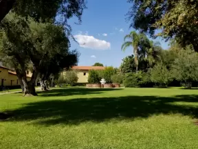 A park of exquisite beauty, with flowering trees and a picnic lawn fronting a pond full of turtles and koi.