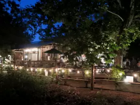 Garden in a sunny, sheltered spot, with cottage with turret under redwood trees, Buddhist gazebo, goats, and flowers galore! Seasonal pumpkins and Christmas market!