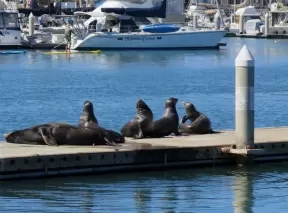 A touristy, colorful area of wharfs and piers where you can watch sea lions up close sunning themselves on the docks.