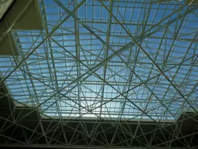 Incredible glass building with interesting activity stations for kids and modern art for parents.