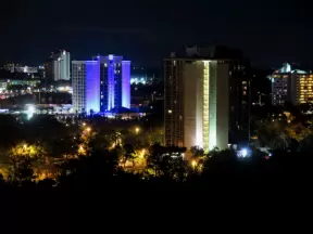 Hilly town with old and new capitol, and some pretty streets covered in a jungly canopy.