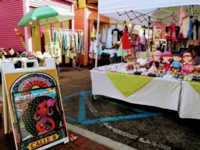 Funky and cool main strip popular with tourists, with blocks of shops and sidewalk cafes and waterfront Veterans Park.