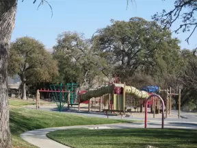 A fantastic park a jet plane, fire engine, and train to climb! Carousel, railroad rides, summertime paddle boat rides, walkway along a gorgeous creek, amazing tall pines, two play structures, and geese!
