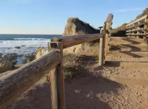 Gorgeous beach with steep steps leading down, and red cliffs like a national park!