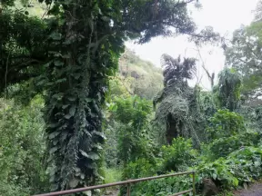 At Iao Valley State Park, the upper path takes you to views of Iao Needle, and the lower path takes you to a magical area by the stream with boulders and large tropical trees. Reservation required.