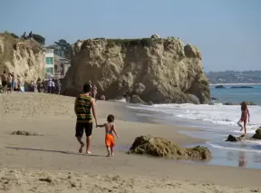 Walk a steep path with lovely views down to a popular beach where kids play in the sand and bodyboard.