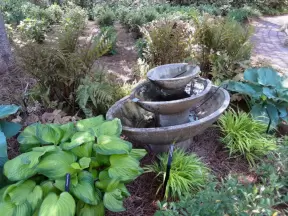 A tropical wonderland of palms, ferns, bromeliads, fountains, sculptures, rocks, ironwork gates, and pergolas, with the delightful scent of flowers filling the air.