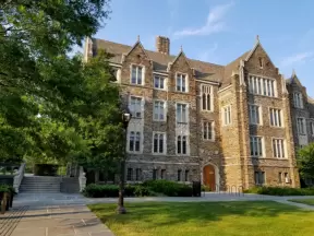 Gorgeous Gothic architecture, impressive chapel, and cute patios under leafy trees.