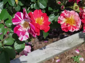 Small, gorgeous park with old trees, tropical plants, flowers, roses, and a pond with koi and turtles.