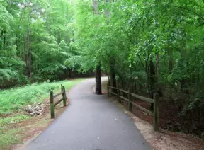 2.4 mile paved, intermittently shady greenway with varied sights!