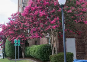 Gorgeous one-mile greenway or bike path with shady forest, flowers, little hills, and pond with fountain.