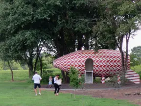 A popular playground for little kids, with shady picnic areas. Nearby at a Greek Church, pretend you're on an island in Greece...
