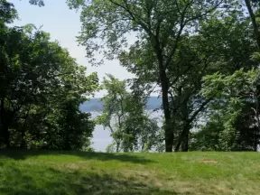 Wonderful spot along the river, with happy people biking and roller blading by. Observation tower with sweeping views.