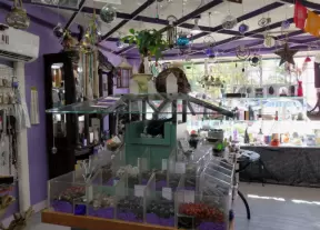 Adorable spot along Highway 1, with creamery food truck, lunch food truck, amazing glassworks store, pottery store, leather store, and peaceful Irish chapel.