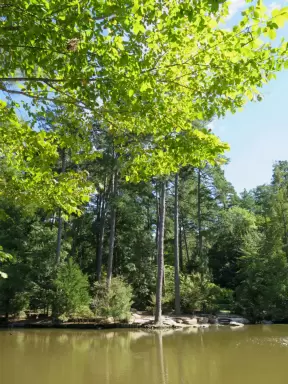 Beautiful, hilly park with jade green lake and fake caves and rock formations.