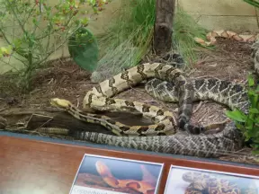 Two beautiful modern buildings full of attractive exhibits including some live animals.