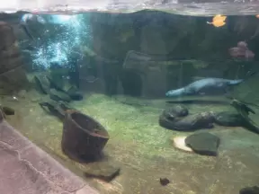 An aquarium with nice exhibits including a manatee that kisses you through the glass!