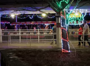 A tiny main street with lovely Christmas lights, plus a large area of cookie cutter homes with some shadeless walking paths and lots of small parks.