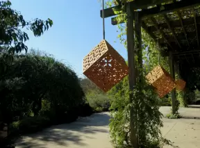 A wonderful exhibit on acres of undulating hills, with a field of lights resembling a flower field, and metal sculptures making patterns of light.